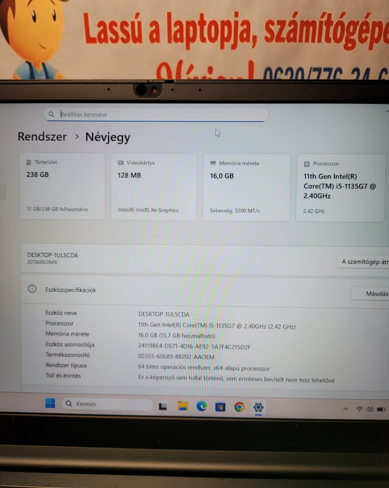 Windows 11, Office telepítve, leszervizelve, használatra készen.