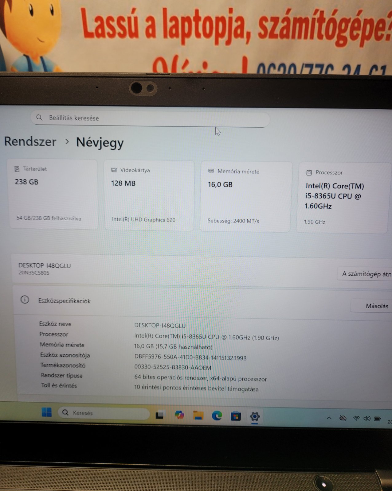 Kijelző: 14.0" FULLHD ÉRINTŐKÉPERNYŐ